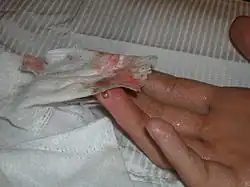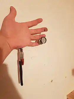 Magnetic implant is an experimental procedure in which small, powerful magnets (such as neodymium) are inserted beneath the skin, often in the tips of fingers. They exist in tubes and discs. This procedure is popular among biohackers and grinders, but remains experimental.[1] Magnetic implants are often performed by amateurs at home, using readily available surgical tools and magnets found online. However, some professional body modification shops do perform implant surgeries.[2] Magnetic implants can also be used as an interface for portable devices to create other new "senses", for example converting other sensory inputs such as ultrasonic or infra-red into a touch sensation. In this way the individual could 'feel' e.g. the distance to objects.[3]