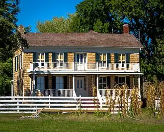 The Mahaffie Stagecoach Stop and Farm Historic Site, locally known as the Mahaffie Farm, is located in Olathe, Kansas. The house was originally a stop along the Westport Route of the Santa Fe, Oregon, and California Trails, which originated in nearby Westport, Missouri. The house's heyday came with large numbers of westbound travelers of the 1860s.