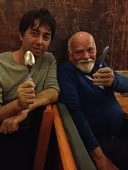 American mail-artist David Horvitz (active since the 2000s) meets Brazilian mail artist Paulo Bruscky (active since the 1970s) in Berlin, Germany in November 2015