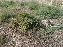 Maireana decalvans, commonly known as black cottonbush,[2] is a species of flowering plant in the family Chenopodiaceae and is endemic to Australia. It is a erect to spreading perennial plant with fleshy, terete to narrowly spindle-shaped leaves, glabrous, bisexual flowers arranged singly, and a hairy fruiting perianth with a hemispherical tube and a thin-walled wing.