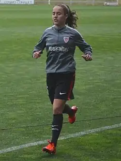 Following a year with the club's B-team,[2] she made her senior team debut in September 2015 and became a regular from then on, making 30 appearances in the 2015–16 Primera División as Athletic finished as champions. She played and scored in the subsequent 2016–17 UEFA Champions League,[6] but the club did not progress beyond the opening knockout round.