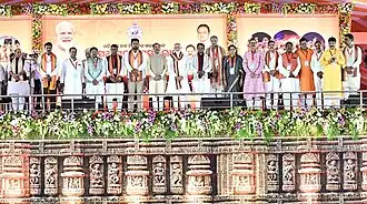 On 12 June 2024, Chief Minister Mohan Charan Majhi along with his two deputy CMs, 8 Cabinet Ministers, and 5 Minister of State with Independent Charges took oath in Janata Maidan, Bhubaneswar. Governor Raghubar Das administered their oath. Prime Minister Narendra Modi, Home Minister Amit Shah, Defense Minister Rajnath Singh, along with Chief Ministers of 10 BJP ruled states were present.[3][4][5]