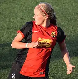 The Royals traded Robbe to the Chicago Red Stars on December 19, 2019, in exchange for Chicago's second round draft pick in the 2021 NWSL College Draft.[30] She made her club debut in the 2020 NWSL Challenge Cup, appearing as a substitute in the Red Stars' 2–1 defeat to the Washington Spirit on June 27, 2020.[31] The Red Stars ended up progressing to the playoff stages of the Challenge Cup, beating the OL Reign and Sky Blue FC before losing to the Houston Dash in the championship match.[32] Robbe came off the bench in all three games, although she did not take a penalty kick in the quarterfinal shootout against the Reign.[33][34][35]