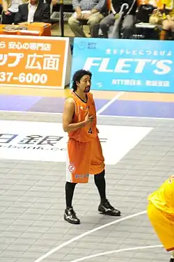 Makoto Hasegawa (長谷川誠, born 2 April 1971) is a Japanese basketball coach and a former player.[6] Hasegawa was the head coach of Akita Northern Happinets.[7] He is the first Japanese player ever to play in the American Basketball Association. Because of his trademark bushy goatee, his nickname is "hige" in Akita.[8] He played for Kosei Club and Akita Northern Bisons as an amateur in his home prefecture.[9][10][11] Currently he serves as an unaffiliated director of the Akita Happinets and the Japan national 3x3 team coach.