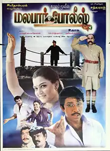 Malabar Police (/mələbɑːr/) is a 1999 Indian Tamil-language crime comedy film written and directed by P. Vasu. The film stars Sathyaraj in a dual role, Abbas, Khushbu and Mumtaj. It revolves around an eloping couple witnessing a murder, and evading an attack by the murderer. A CBI officer investigates the murder, and suspects it is connected to the rivalry between two businessmen.