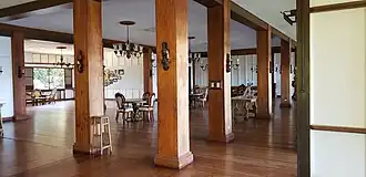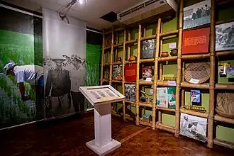 It is a two-story mansion overlooking the Paoay Lake, and consists of seven (supposedly a lucky number for Marcos) rooms, with each room having a theme of historical events from the Marcos era: Study, Agriculture, Diplomacy, OFW (overseas Filipino workers), Culture, Nation Building and Family.[1]