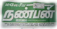 Malaysia Nanban (Tamil: மலேசியா நண்பன், "Malaysia's Friend") is a Tamil daily newspaper based in Malaysia, one of only three Tamil-language dailies in the country, alongside the Makkal Osai and the now-defunct Tamil Nesan.