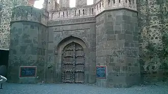 Malegaon Fort was constructed in 1740 by Naro Shankar Raje Bahadur, general of the Peshwa. He was appointed as an agent in Malwa.[1] He was gifted 18 villages which included Malewadi.[2] Craftsmen were brought in from Surat and northern India to build the fort, the construction of which took 25 years.[3] After the fort was completed, the craftsmen settled in the town.
