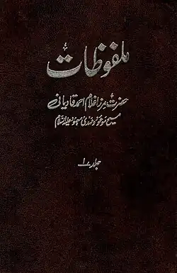 Malfūzāt (Urdu: ملفوظات, "Discourses"; lit. "spoken words") is a ten-volume collection of the discourses, question-and-answer-sessions, sermons and dialogues of Mirza Ghulam Ahmad, the founder of the Ahmadiyya movement. The volumes contain, for the most part, speech that was transcribed by several of Ghulam Ahmad's close disciples as it was being communicated and was published in Ahmadi periodicals during his lifetime,[1] covering a period starting from 1891 until his death in 1908. This material was compiled and published as a set of volumes during the 1960s.[1]