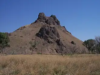 Malheur Butte is an extinct volcano located in Malheur County, Oregon. Between 20 and 15 million years ago, the region from north-central Washington to northeastern California experienced a series of volcanic eruptions and basalt lava floods that covered thousands of square miles. These ancient lava floods often dammed streams, creating lakes and swamps that may have lasted for millions of years before filling with sediment or draining as erosion slowly lowered their outlets. The western Snake River plain contained many such lakes, and geologists believe that between 8 and 2 million years ago, "Lake Idaho" covered much of central eastern Oregon. Sediment deposited in this lake once covered Malheur Butte, and during the last 2 million years the Malheur River and other eroding forces slowly exposed and shaped today's landmark.