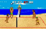 Malibu Bikini Volleyball is a two-on-two beach volleyball game similar to Kings of the Beach and RealSports Volleyball, where players take control of either a male or a female avatar in a series of matches on outdoor courts taking place in Malibu, California.[8][9] Most of the rules from the sport are present in the title, though they can be modified in the options menu along with other settings that alters the matches.[8][9] Some of the gameplay options found within the game include a friendly mode where players can practice their skills and a tournament mode where multiple teams must be faced in order to become the emerging champion.[8][9] Multiplayer is one of the main focus of the game, as up to four players can compete against each other by connecting four Atari Lynx units via the system's ComLynx port during the title screen.[8][9] During gameplay, players are able to apply skills such as serve, pass, set, attack and block the incoming ball for offensive and defensive purposes respectively in order to score points. A noteworthy feature is the ability to change the in-game music by pressing the Option 2 button during gameplay to do so.[8][9]