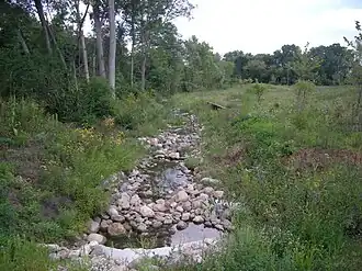Malletts Creek is a stream in Washtenaw County, Michigan. A tributary to the Huron River,[1] much of Malletts Creek's watershed lies within urban or suburban areas. Approximately 40% of the land within the creek's watershed is topped with impermeable surfaces.[2] As a result, the stream exists in an extremely impaired state,[1] and testing sites on the stream monitored through the "Adopt-A-Stream" program continuously indicate the streams poor quality.[1]