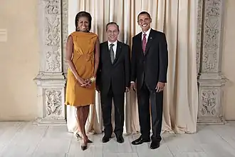 Maltese Prime Minister Lawrence Gonzi with U.S. President Barack Obama and First Lady Michelle Obama, September 2009