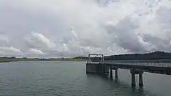 Constructed in 1982, the main Mambilla Dam is a large roller-compacted concrete dam and reservoir at 1,300 metres (4,300 ft) above sea level. From this dam, water is diverted off the reservoir towards the western side of the plateau through four hydraulic tunnels totaling 33 kilometres (21 mi), intercepted by four smaller dams: Nya, Sum Sum, Nghu, and Api Weir.[1]