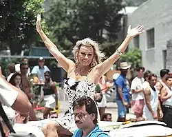 Van Doren at a gay pride parade in Los Angeles in 1987