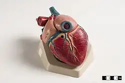The mammalian heart has four chambers, two upper atria, the receiving chambers, and two lower ventricles, the discharging chambers.[85] The heart has four valves, which separate its chambers and ensures blood flows in the correct direction through the heart (preventing backflow). After gas exchange in the pulmonary capillaries (blood vessels in the lungs), oxygen-rich blood returns to the left atrium via one of the four pulmonary veins. Blood flows nearly continuously back into the atrium, which acts as the receiving chamber, and from here through an opening into the left ventricle. Most blood flows passively into the heart while both the atria and ventricles are relaxed, but toward the end of the ventricular relaxation period, the left atrium will contract, pumping blood into the ventricle. The heart also requires nutrients and oxygen found in blood like other muscles, and is supplied via coronary arteries.[86]