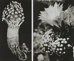 In his 1952 publication,[4] Cutak compared the plant to Turbinicarpus valdezianus, but refrained from placing it into any genus.[3] He described it as "one of the tiniest and daintiest cacti in existence".[5] Though he planned a trip to rediscover it in Mexico, no follow-up occurred.[3] The first to publish the photographs, in 1959-61, was Curt Backeberg, who tentatively placed it in Neogomesia.[3][6][7] By the time Cutak photographed them, the plants had been deformed from improper growing conditions, which made it even more difficult to identify the genus.[5]
