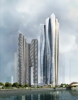 The tower is a mixed-use development located on a riverfront site in the Jin-jiang district. The tower was designed by Aedas.[1]