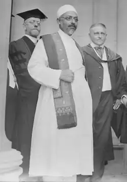 In May 1905 and with the financial support of Parsi community (in particular that of the Tata family), Dhalla continued his studies at Columbia University in New York City, where he studied under the personal tutelage of A. V. Williams Jackson, an authority on the Avestan language. Even with the preparatory assistance of Shapurji Saklatvala and Jivanji Jamshedji Modi, New York was initially quite a culture shock for Dhalla, who until his arrival in the United States had never even worn "foreign attire."[5] "How and when to wear these [suits] was quite unknown to me."[6]