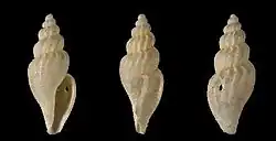 | Shell of † Mangelia coplicata (specimen at MNHN, Paris) | |