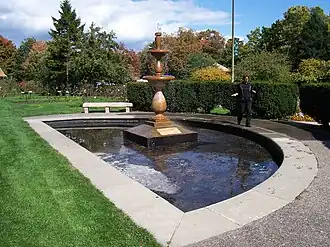 A statue of former slave and renowned Underground Railroad conductor Frederick Douglass which was located in Maplewood Park was vandalized and torn down over the weekend of July 4, 2020.[3][4][5] The site of the present-day park was located along the Underground Railroad where Douglas and Harriet Tubman helped shuttle slaves to freedom.[5] The statue is a replica of statue of Frederick Douglass in Rochester, New York. Removal also occurred on the anniversary of Douglas' famous 1852 anti-slavery speech at this location.[6]
