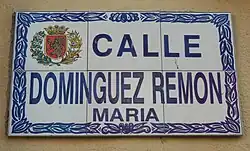 Street plaque of Zaragoza dedicated to María Domínguez Remón