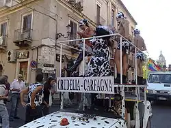Later she started working in television for the company Mediaset, controlled by the family of Silvio Berlusconi. From 2000 to 2006 she participated as a showgirl in the television program La domenica del villaggio ("Sunday in the Village") with Davide Mengacci. In 2006 she led the program Piazza grande ("Main Square") together with Giancarlo Magalli.[6] Carfagna has also been part of the television programs I cervelloni, Vota la voce and Domenica in.[7]