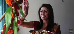 Traditional attire in Maharashtra includes the dhoti, and pheta for men, while a choli and nine-yard saree locally known as Navwri saree for women.[19][20] Traditional attire is becoming rarer with trousers and shirts for males and five yard saree or salwar kameez for females as the popular replacements. The traditional attire is increasingly worn by Maharashtrians only during special occasions and festivals. Marathi women also wear gajra or veni made by flowers on their sarees. Maharashtra also has rich Jewellery. Jewellery such as tanmani, bormal, Ranihar, kolhapuri saaj, thushi are worn on the neck; bajuband on area of hand above elbow; painjan wore on ankles; kudi, bugdi, vajra kutka, vel, Bali on ears; Marathi nath on nose; jodave on toes.