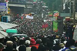 In 1999, Ravalomanana ran as an independent candidate in the local elections, spending over $110,000 on his campaign—a level of expense then unheard of in a Malagasy mayoral race.[1][8] He was elected with 45 per cent of the votes.[9] His tenure stretched from December 1999 to his ascent to the Presidential office in May 2002. During his time as mayor, he balanced the city's budget and improved its water quality and waste management, and drew criticism for an urban-restoration project that demolished houses that were still being lived in.[10] He has been described as one of the most popular mayors in Antananarivo's history.[8]