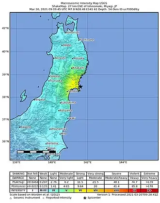 - ^ a b "M 7.0 – 27 km ENE of Ishinomaki, Japan". USGS-ANSS. Retrieved 20 March 2021.