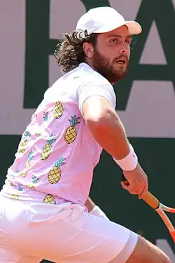 Between June 2021 and January 2022, he qualified for three consecutive Grand Slams for the first time in his career at the 2021 Wimbledon Championships, the 2021 US Open and at the 2022 Australian Open. He became the only Argentine to qualify at the All England Club and the only South American to qualify at the US Open in 2021.[5] The Argentine saved six match points to defeat American Aleksander Kovacevic in the final round of qualifying at the US Open,[6] to make just his eight main draw appearance at a Major.[7] He defeated 29th seed Alejandro Davidovich Fokina in the first round to reach the second round for the first time at this Major before losing to fellow Argentine Facundo Bagnis.