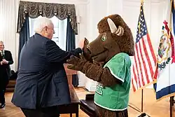 Marco the Bison is the official costumed mascot of Marshall University in Huntington, West Virginia. He is an American Bison dressed in the home uniform of the school. Marco's name developed from a mix of the university's name at the time, Marshall College. Marshall became a University in 1961, but the name for Marco stuck.[1]
