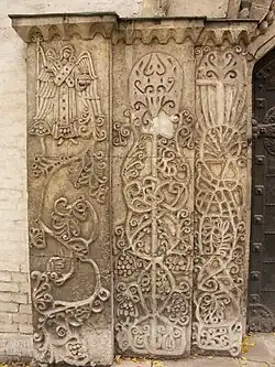 From 1908 to 1912, Alexey Shchusev designed the Church of Saints Martha and Mary and the Holy Protection Cathedral, both structures being Russian Revival and Art Nouveau renderings of a medieval Novgorod architectural type. The cathedral's snow-white walls are adorned with carved crosses by Sergey Konenkov. The interior contains frescoes and mosaics by Mikhail Nesterov and Pavel Korin.