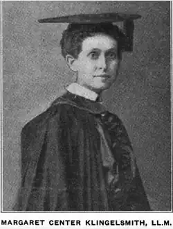 - ^ "Personal Pen Sketches: Margaret Center Klingelsmith" The Lawyer and Banker and Central Law Journal (December 1913): 373.