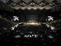In addition to being able to host various sporting events, Margaret Court Arena also hosts a number of concerts, ensuring Melbourne has a third indoor entertainment venue, all of which are located within Melbourne Park and feature retractable roofing. The arena has played host to artists such as Bob Dylan, Cloud Control, The Black Keys, Delta Goodrem, Demi Lovato, Hilltop Hoods, Kraftwerk, LCD Soundsystem, Macklemore & Ryan Lewis, Selena Gomez, Imagine Dragons, 5 Seconds of Summer, Angus & Julia Stone, Little Mix, The B-52s, ATEEZ, Aurora and many more. The venue has a capacity of 6,500 for concerts though has the flexibility to downsize for smaller events.[12]