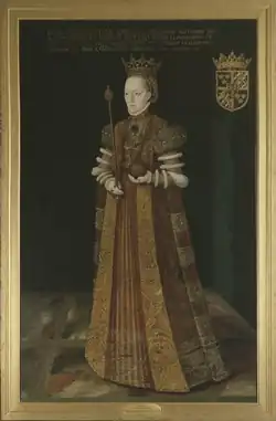 Margaret married King Gustav I October 1536 in Uppsala Cathedral in a ceremony conducted by archbishop Laurentius Petri and was crowned Queen there the next day.[3] At her wedding, her brothers Abraham and Sten were knighted, as well as her brother-in-law were named riksråd, beginning what was referred to as the period of the Kungafränderna ('The King's Relatives'), meaning the relatives he acquired through marriage with Margaret, in which her relatives were given prominent positions and influence at court as the king's closest allies, married in with the king's relatives and often present at official royal representational ceremonies.[4] During the first years of their marriage, Margaret's mother Ebba played a dominating role in the royal court, and it was said that even the king did not dare to oppose his mother-in-law.