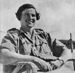 Their first posting was to Egypt,[19] caring for Greek civilians in a refugee camp.[20] They then moved to Greece where they organised centres to receive and process large numbers of hostages who had recently been released by their captors, The Greek People's Liberation Army. When the team arrived in Greece in February 1945, "Greek Guides, recognising the trefoil (the international symbol of Girl Guides) greeted them enthusiastically and with great relief at their coming."[21] At a speech in Cambridge in 1950 the Chief Guide, Olave Baden-Powell said "You might be well proud of what those two [the second person being Marjory Jarman] did in the G.I.S. team helping the Greek Guides get started again."[22]