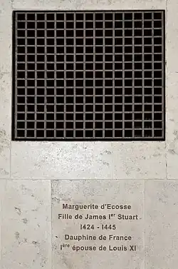 Margaret Stewart (French: Marguerite; 25 December 1424 – 16 August 1445) was a princess of Scotland and the dauphine of France. She was the firstborn child of King James I of Scotland and Joan Beaufort.