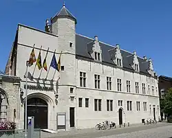 This was not the end of the problems for Margaret and Maximilian: the Netherlanders still disliked his rule of the territory. In 1488, he was taken prisoner in Bruges by the citizens. Margaret called on the emperor for help.[6] Later he was released after making concessions and also because Bruges feared his father's army. The next year, he was summoned back to Austria by his father, the Emperor; Burgundy was left to be governed by Margaret together with the Burgundian Estates, both of whom also undertook the guardianship of the young Duke Philip. She would later welcome his daughter, Margaret, after her rejection by the French court in 1493. Her residence in Mechelen thus became a princely court. This was also the place Philip the Fair's children would be educated when he departed for Spain in 1501. Margaret of Austria, her godchild, would continue to choose Mechelen as residence (and thus the capital city of the Low Countries) as a widowed governor in 1507. Blockmans opines that Margaret of York was the model of Margaret of Austria as well as later widowed female governors, as they inherited her residence, library and household.[7] Another indication of the close relationship between Margaret and Maximilian was a book recounting Macedonian monarchy and the Hellenistic kingdom, written by Justinius, that she gave him, with the inscription "Your loyal mother". The sign that showed this book was intended for Maximilian was the imperial coat of arms, which he could not have carried before his father's death in 1493, as well as the codex style, the subject, the language.[8]