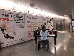 Pianist performing at Diagonal metrostation, as part of the Maria Canals competition event in 2017.