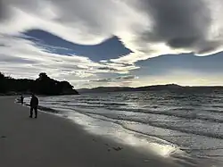 Before the colonial era, Aboriginal people of the Tyreddeme band of the Oyster Bay tribe journeyed regularly to the island and much evidence of their presence remains, particularly around the bays on either side of the island's isthmus.[6] In 1802 the French expedition led by Nicolas Baudin encountered the Aboriginal people of Maria Island, as did the whalers of the early 19th century. René Maugé, the zoologist on Baudin's expedition, was buried on Point Maugé on south Maria Island.[7]