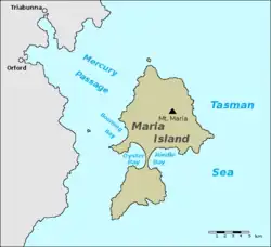 4. ^ "Placenames Tasmania – Maria Island". Placenames Tasmania. Select “Search”, enter "43770N", click “Search”, select row, map is displayed, click “Details”. Retrieved 4 August 2020.