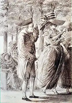Her first tracts, Müssige Stunden eines Frauenzimmers (literally: Leisure Hours of a Lady) (By an Observer) and Philosophie eines Weibes, von einer Beobachterin (Philosophy of a Woman, by a woman observer),[3] were published anonymously; the latter caused quite a stir. During a stay of the troupe in Strasbourg, the author met the junior postdoctoral lawyer Theophil Friedrich Ehrmann. In 1785, facing the resistance of his parents, they married in secret; her seven years younger husband continued to live with his parents and they met only in the evening until 1786, when reconciliation with Theophil Ehrmann's parents occurred. Also in 1786, under the pseudonym Maria Anna Antonia Sternheim, Marianne Ehrmann published the play Leichtsinn und gutes Herz oder die Folgen der Erziehung, (Frivolity and a Good Heart, or The Consequences of Education). Duke Charles of Württemberg and his wife Franziska promised Theophil Friedrich Ehrmann a position as professor in the Charles School, but in 1788, when the duke broke his word, the Ehrmanns moved to Stuttgart. Marianne Ehrmann became the co-editor of the journal Der Beobachter (Observer) that was published by her husband.[1]