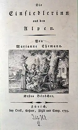 Cover of Einsiedlerin aus den Alpen, first volume, published in Zürich in 1793.
