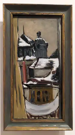 The first success in her native country came in 1966 when the Wiener Secession staged a large solo exhibition which subsequently travelled to Linz, Bremen and Munich. Her breakthrough in the UK occurred in 1985, with a major retrospective at the Goethe Institute in London,[3] which generated much acclaim and saw her reputation as a major Austrian artist cemented. However, on the subject of exhibiting, as the artist's friend and executor Jeremy Adler wrote in his obituary for her, "Motesiczky never needed to sell her paintings, indeed she preferred to keep them around her".[4] An aristocratic disdain for the marketplace meant that, while she half welcomed exhibitions, they remained uncomfortable experiences." The retrospective was accompanied by essays from Gunther Busch, Richard Calvocoressi and Ernst Gombrich. The Tate Gallery acquired three paintings and the exhibition travelled to the Fitzwilliam Museum in Cambridge. The last major exhibition of her lifetime took place at the Österreichische Galerie Belvedere in Vienna in 1994. Marie-Louise died in London on 10 June 1996. Her ashes were consigned to the family grave at the Döbling Cemetery in Vienna.