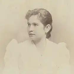 In 1900 her portrait was painted by her friend Toorop in the pointillist style.[4] Also born in Indonesia, it is speculated that they met at the 1898 exhibition.[2] In 1902 there was a split between those who wanted to concentrate on the working woman and those who thought that reform was mainly required for those who spent some funds on fashionable but restrictive clothing. The latter group was centred at The Hague and de Lange was their chairperson. de Lange's approach could be seen as a more sensible continuation of fashion and she created a magazine to advocate for their views.[3]