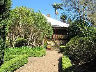 Marika is prominently located on a rise and bend corner site of Ryde Road and covers two large blocks of land with remnants of original formal garden pattern layout, including mature trees, flower beds and paths.[1]