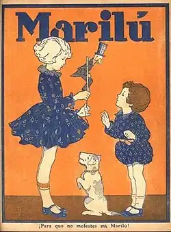 The release of Marilú was so successful that in March 1933 Larguía managed to culminate her project and assimilate it to the French precedent with the publication of its own magazine of the same name, which was edited weekly until 1936, and monthly throughout that year.[5] Both the release of the doll and its house organ are prime examples of the crystallization of the recognition of children as a well-defined consumer group, something that had been in the making since the early 20th century.[4] Through Marilú magazine, Larguía wrote directly to the girls who had her doll under the pseudonym "Tía Susana" (Spanish for "Aunt Susana").[3] She also formed the SDTS club (Sobrinitas de Tía Susana; in English: "Aunt Susana's little nieces"), through which the girls could write to each other, exchange figurines, sewing patterns and information about Marilú.[3] According to researcher María Paula Bontempo: "In the same way that the launching of a product is considered today, it was not enough for it to be in the shop windows; it was necessary to put meanings into circulation in order to make it known, understand it and desire it. That is what the publication was about, providing 'scripts' where girls valued a 'legitimate' Marilú and molded them as consumers."[4] After 1936, the magazine reappeared only sporadically and in different formats, alternating with Billiken the publication of patterns for her clothing.[5]