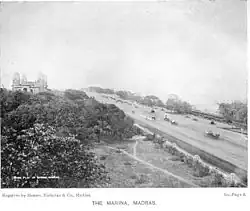 Before the Madras harbor was built, the beach was just a strip of mud, teeming with mudskippers. The beach washed up close to the present day road for a long time until the harbor was built in 1881. Mount Stuart Elphinstone Grant Duff, the governor of Madras from 1881 to 1886, who was captivated by the beach on an earlier visit to the city in the late 1870s,[12][13] conceived and built the promenade along the beach in 1884 by extensively modifying and layering with soft sand. He also gave it the name Madras Marina in the same year.[12][13] Since the early 19th century, a number of public buildings were constructed fronting the beach.[11]