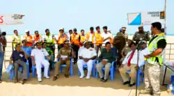 From 2014, Tsunami [95] and Anti-terrorism Drills have been conducted at the beach[96] by Survival Instincts jointly with Indian Navy, Indian Coast Guard, Tamil Nadu Disaster Management Authority, and Tamil Nadu Police Coastal Security Group.